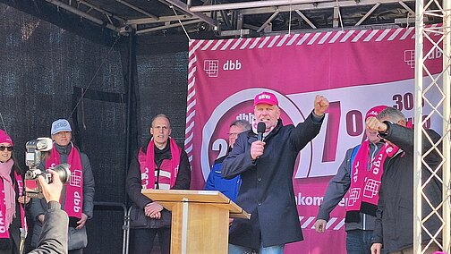 dbb-Vize Andreas Hemsing und BBW-Vorsitzender Kai Rosenberger unterstrichen in kämpferischen Reden unsere berechtigte Forderung.
